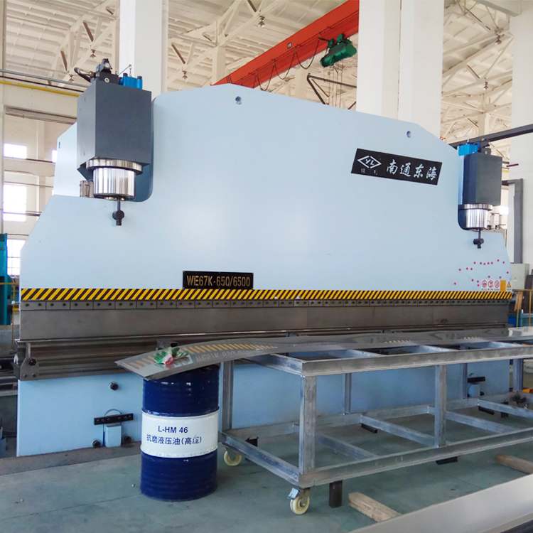 我厂的折弯机为650吨液压动力,6.5米长,变位自动调节器,芬兰数控系统,可自动校直系统,候口深度0.75米,折弯厚度1-16mm,直线度±0.5mm。