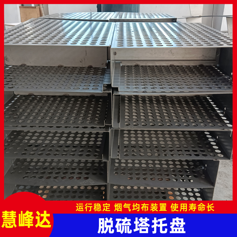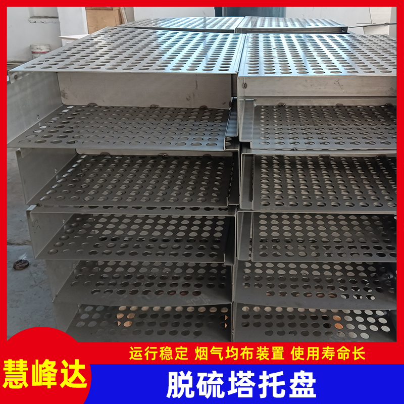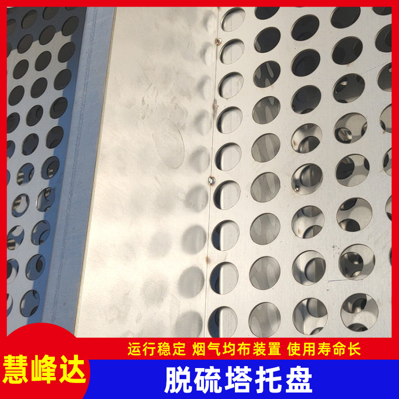 江苏慧峰达智能装备有限公司生产的2205托盘又叫烟气均布板,主要用于脱硫塔喷淋塔吸收塔湿电除尘器内部,其作用是为了让烟气分布的更加均匀,从而提高设备的除尘效率。托盘的其他材质一般有316L、2205、1.4529等不锈钢,厚度2.5-5mm,通孔率35-45%,圆孔直径一般35mm,塔直径不定。一般装在下气室,高度根据塔大小确定。