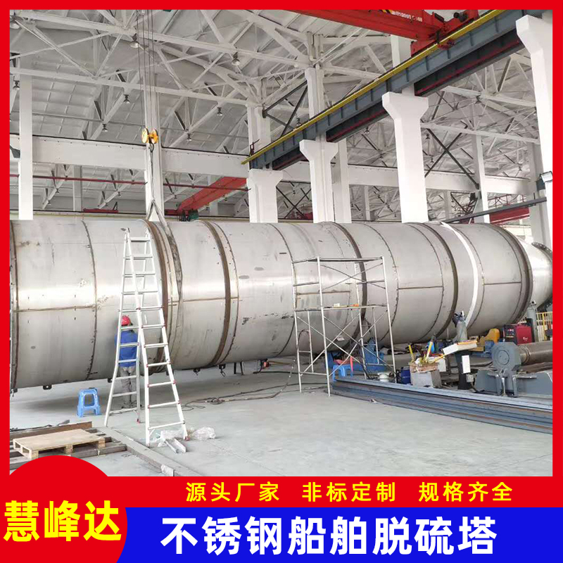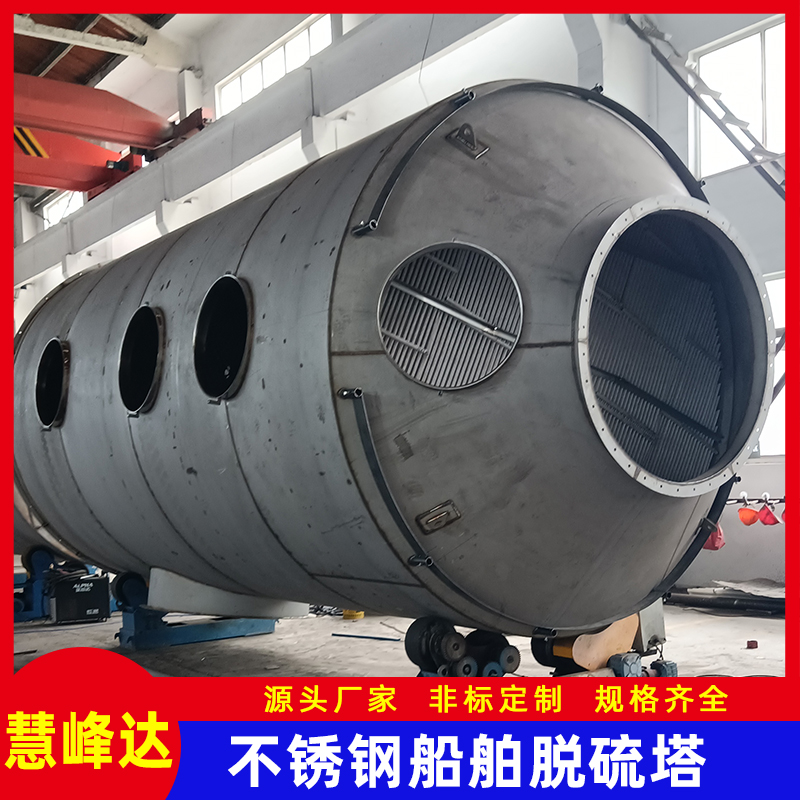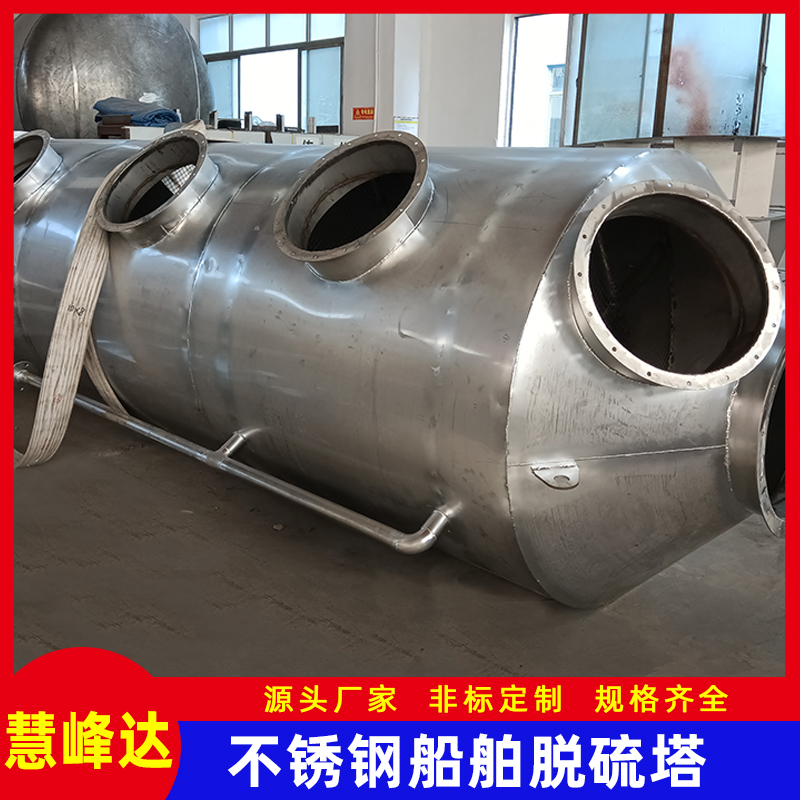 船舶脱硫塔,是一种安装在主机和发电机排烟管上,用来去除废气中的硫化物及颗粒物的装置,也被称为废气清洁系统,业内俗称脱硫塔(英文名Scrubber)。脱硫塔的分类较多,按洗涤水的排放形式,可分为开放式脱硫塔、封闭式脱硫塔和混合式脱硫塔。江苏慧峰达生产的船舶脱硫塔为不锈钢材质,常见的不锈钢船用脱硫塔材质有:254SMO,2205,2507,316L,1.4529等不锈钢,具有耐腐蚀性强,能够抵抗海水和化学物质的侵蚀,延长设备使用寿命,高效净化烟气的特点。